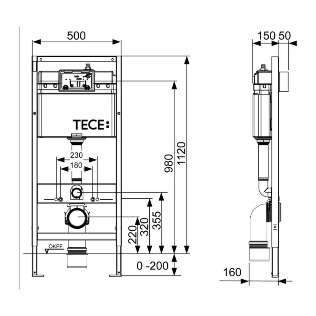Rögzítőelem WC-hez TECEprofil öblítőtartállyal Egységes szerkezeti magasság: 1120 mm, szélesség: 500 mm