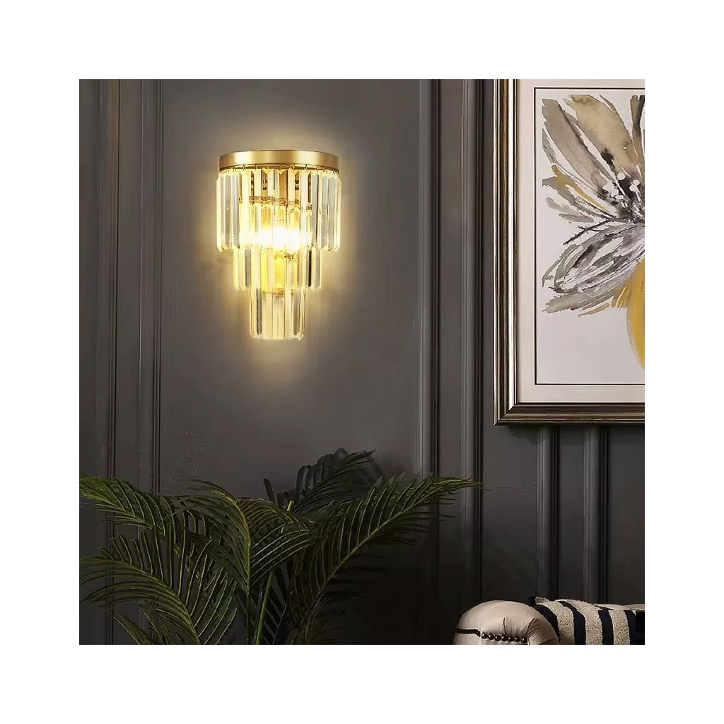 A kristály fali lámpa az elegancia és a funkcionalitás tökéletes kombinációja, luxust kölcsönözve az enteriőrnek. Szerkezete tartós, aranyozott fémből készült, amely garantálja a tartósságot és a sérülésekkel szembeni ellenállást. A kristály elemek egyedi karaktert kölcsönöznek neki, visszaverik a fényt és hatékony világítást hoznak létre, amely kiemeli a stílusos elrendezéseket. A szabványos E14-es menetnek köszönhetően a fali lámpa számos típusú izzóval kompatibilis, így a fény színét és intenzitását tetszés szerint állíthatja be. Univerzális kialakításának köszönhetően ideális mind a klasszikus, mind a modern enteriőrökbe. Ideális lesz nappaliba, hálószobába, előszobába, valamint elegáns kereskedelmi helyiségekbe, például éttermekbe vagy szállodákba.