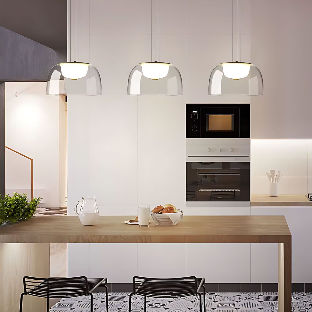 - Modern lámpa átlátszó külső kupolával és finom belső ernyővel
