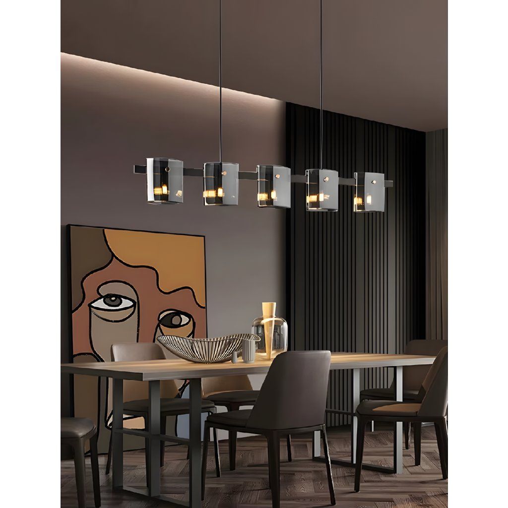 Ez a lámpa nem csupán fényforrás – egy olyan dekorációs elem, amely gazdagít bármilyen belső teret. Tökéletesen illeszkedik modern, ipari, loft, sőt akár glamour stílusú elrendezésekbe is. Az öt, lineáris elrendezésben elhelyezett fénypont kiváló megvilágítást biztosít egy nagyobb térben, ugyanakkor kellemes hangulatot teremt azáltal, hogy a fényt az áttetsző üvegen keresztül szórja.