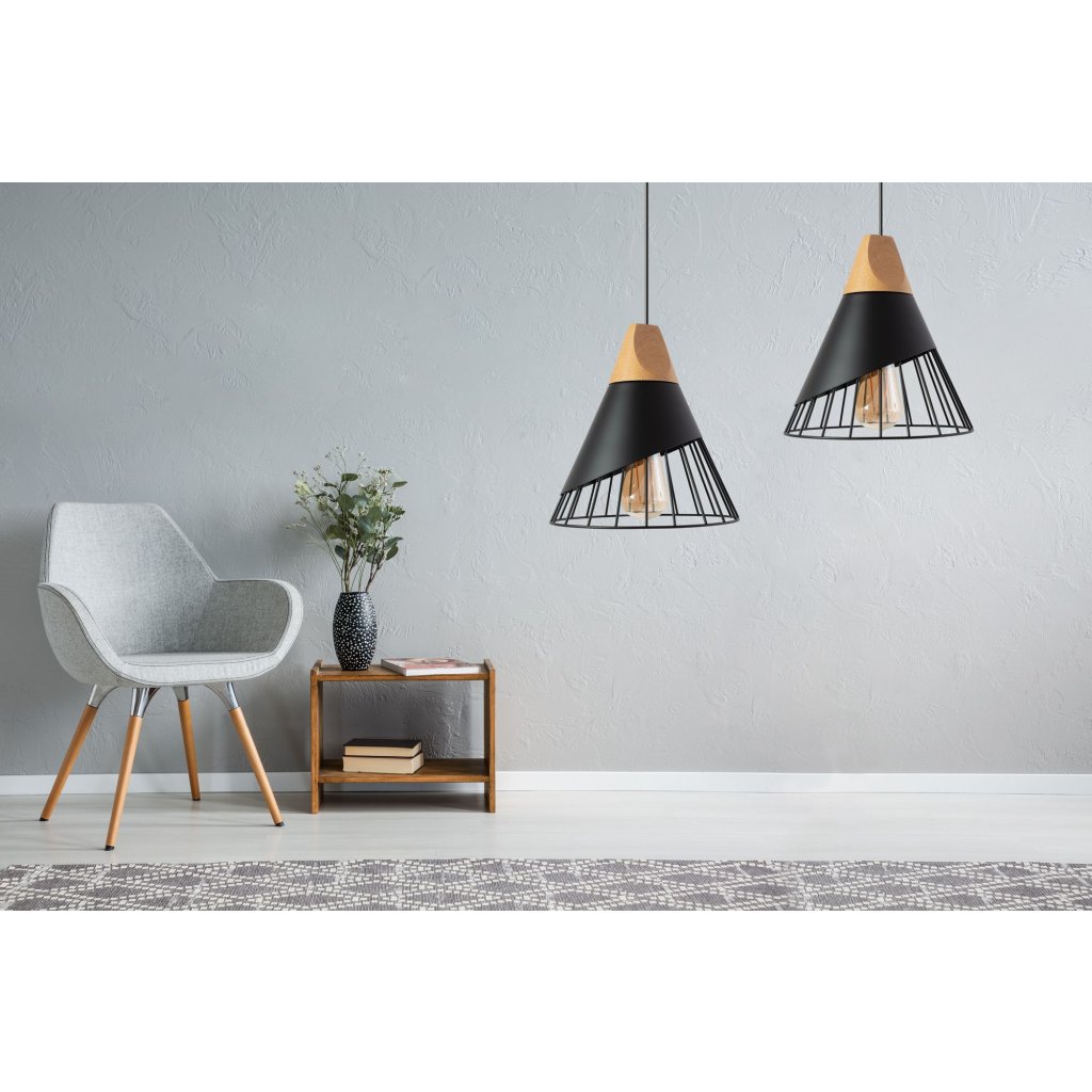 Függesztett lámpa skandináv stílusban. A gyönyörű dizájnt ötvözi a funkcionalitással. A fa és alumínium elemek kombinációja és a kosár formája eklektikus formát kölcsönöz az egésznek. Az avantgárd rudak és az aszimmetrikus árnyalatú keretnek köszönhetően az egész úgy néz ki, mint a skandináv vagy minimalista stílus legjobb kiegészítője. Alumíniumból és fával kombinálva. Az állítható kábel lehetővé teszi, hogy bármilyen belső térhez igazodjon. A termék négy színváltozatban érhető el: fehér, fekete, fekete és arany, valamint fekete rózsaszín arannyal kombinálva.