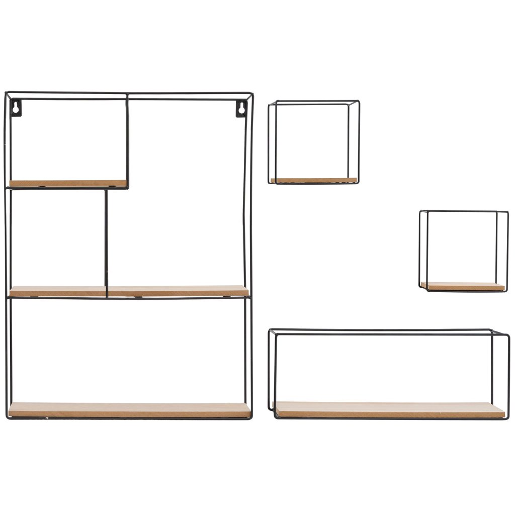 Tutumi, 4 db fém fali polc készlet Ipari 50x40x10 cm 391883, fekete-barna, HOM-09063