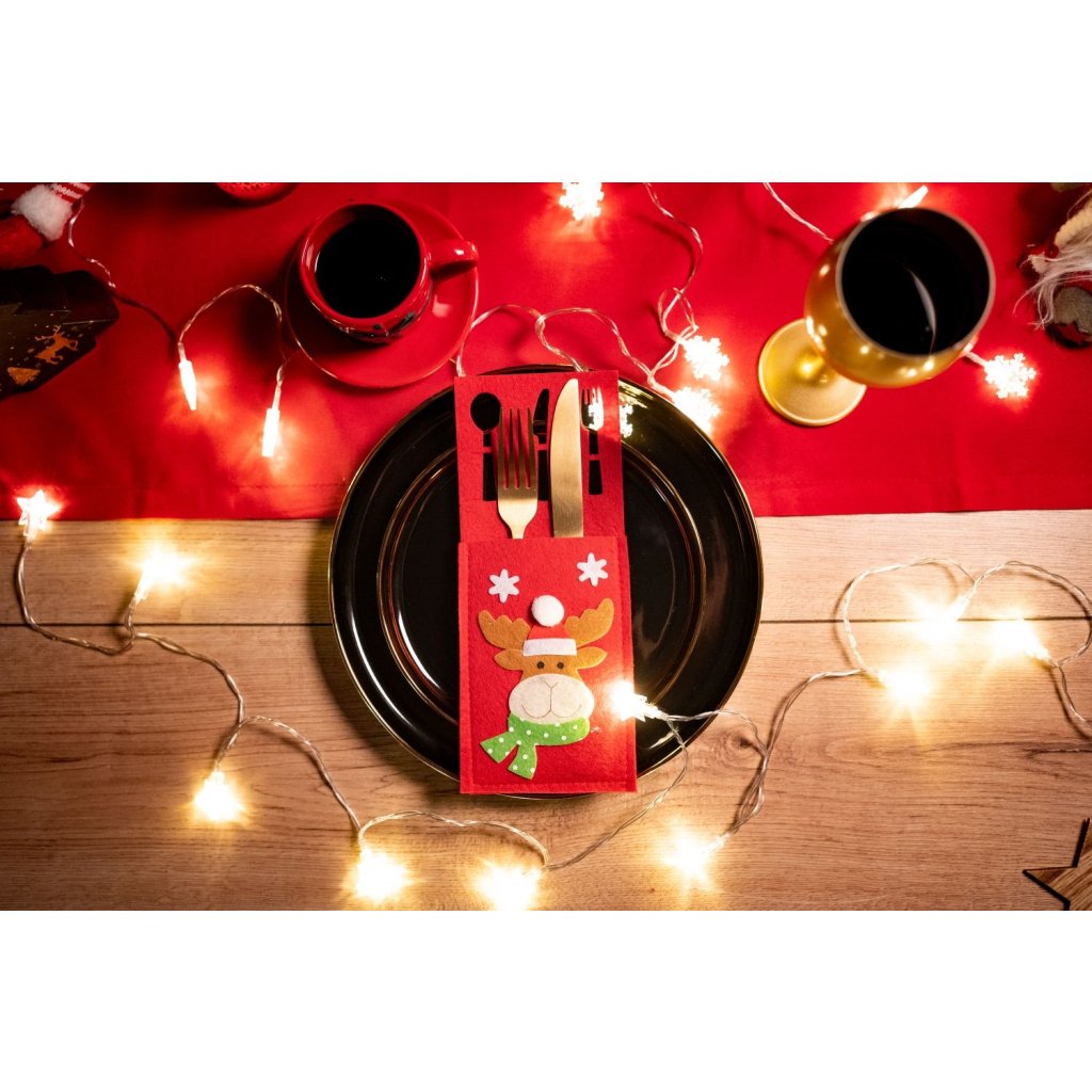Lepje meg szeretteit egy gyönyörűen feldíszített asztallal a karácsonyi vacsora alatt. A karácsonyi motívumú piros borítók tökéletesen passzolnak a fehér edényekhez és a karácsonyfa zöldjéhez. A készlet 3 darabot tartalmaz. A borítókat gondosan tervezték és gyártották, hogy az év legszebb időszakában gyönyörködjenek a szemnek. Univerzális méret – a legtöbb evőeszközhöz passzol.