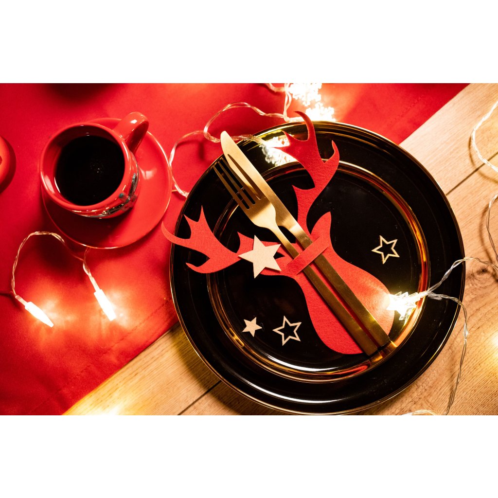 Karácsonyi evőeszköz huzatok. Gyönyörű dekoratív huzatok evőeszközökhöz rénszarvas mintával. Csodálatos asztaldísz az ünnepi szezonban. A karácsonyi sorozat evőeszközhuzatai teszik még szebbé a karácsonyt. 4 db benne van az árban. A borítókat gondosan tervezték és gyártották, hogy az év legszebb időszakában gyönyörködjenek a szemnek. Otthonának díszítése ebben a gyönyörű, ünnepi időszakban nem kell, hogy drága legyen.