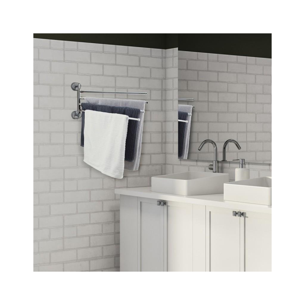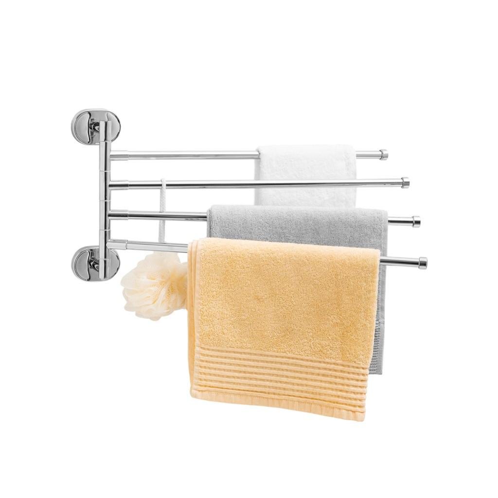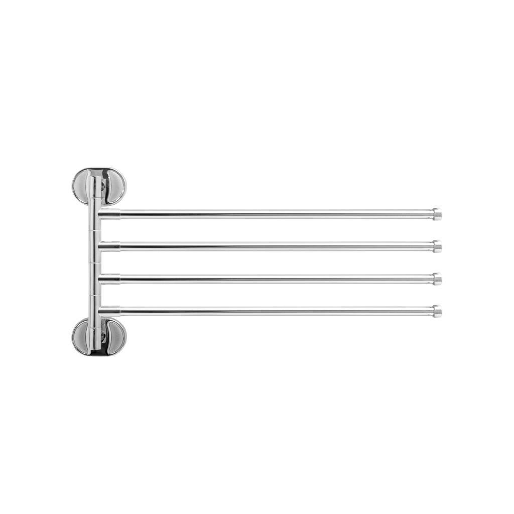 Przykręcany, praktyczny wieszak łazienkowy na tułkówki lub ubrania. Posiada cztery ramiona, mely egymástól függetlenül is elhelyezhető, vagy teljesen összehajtható a fal bármely oldalán. A fürdőszoba szükséges kiegészítője. Modern és klasszikus enteriőrbe egyaránt illeszkedik. Nemcsak magánházakba ajánljuk, hanem igényes szállodákba, luxus apartmanokba és SPA szalonokba is.