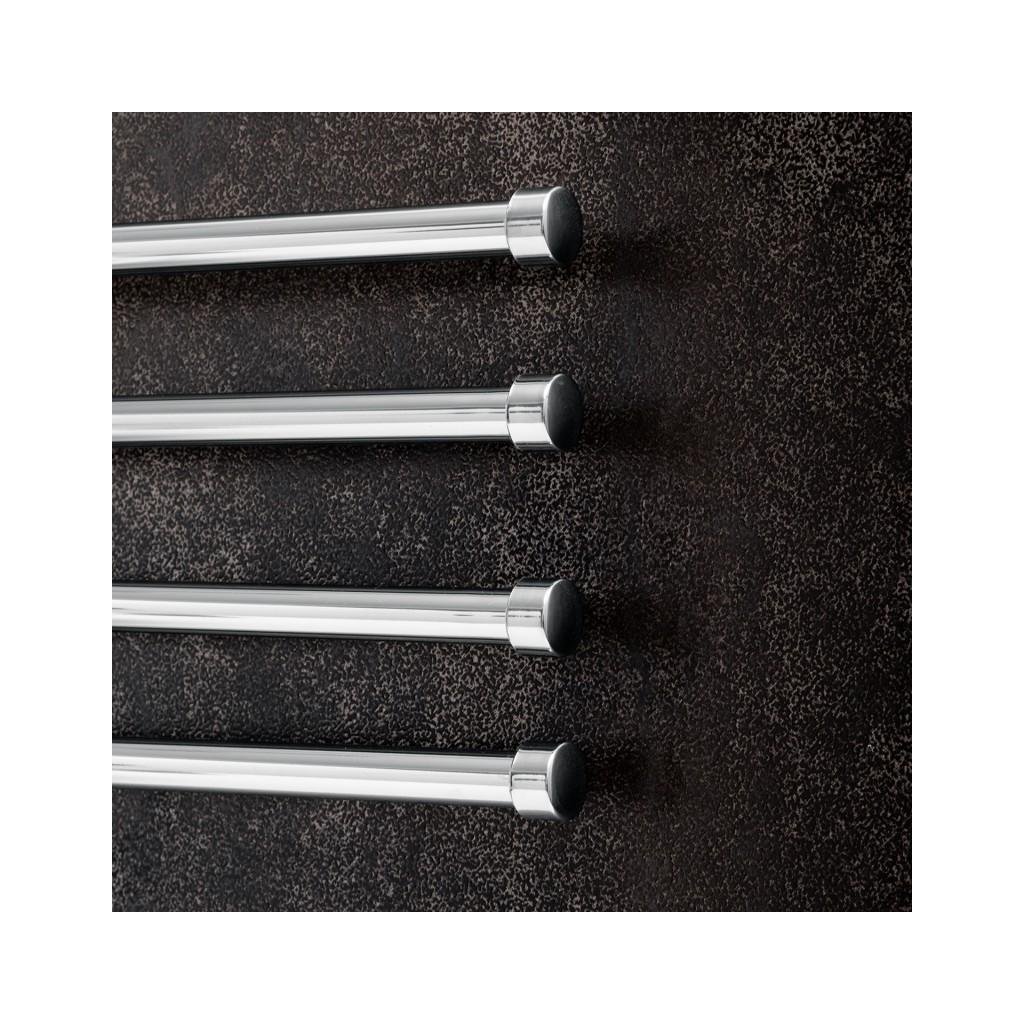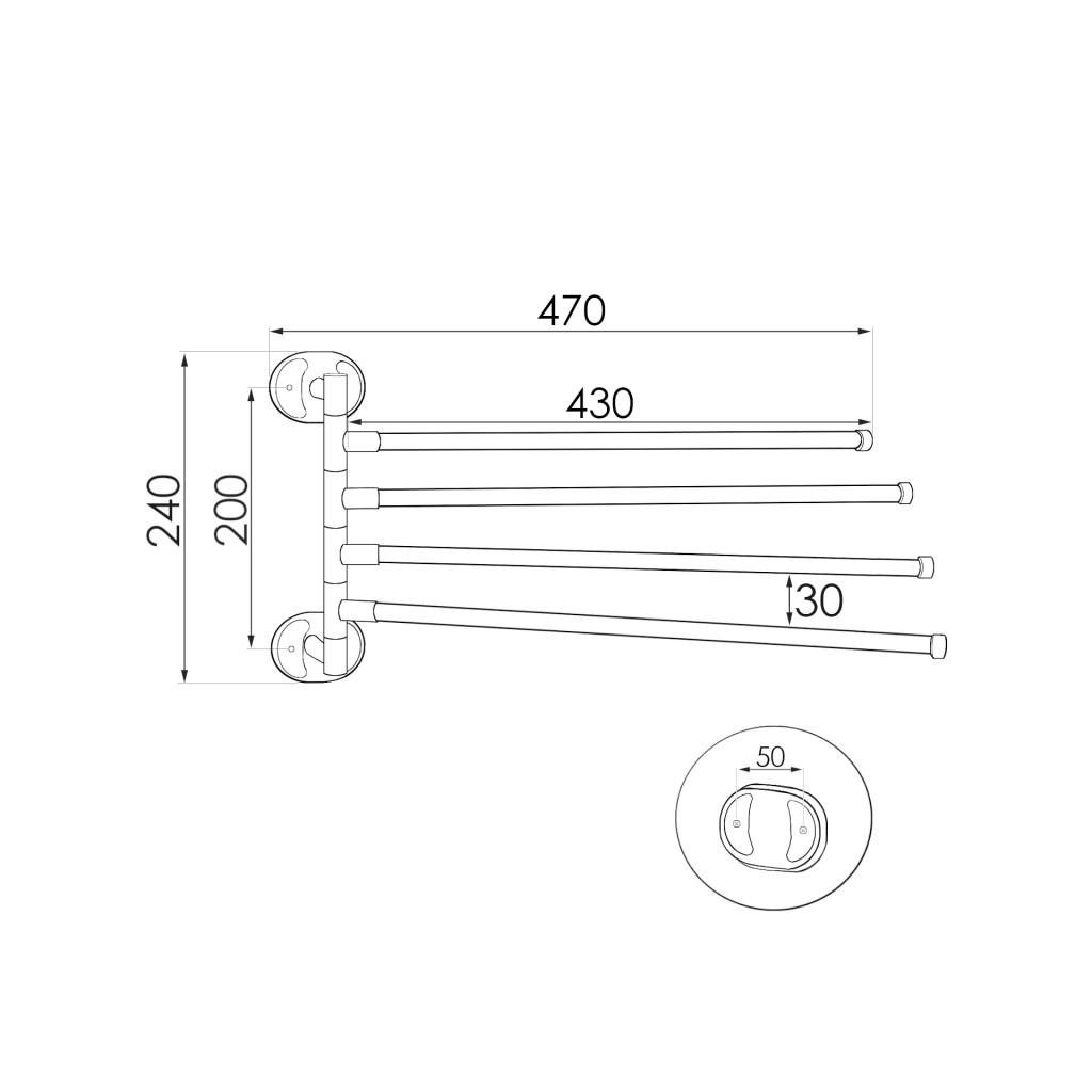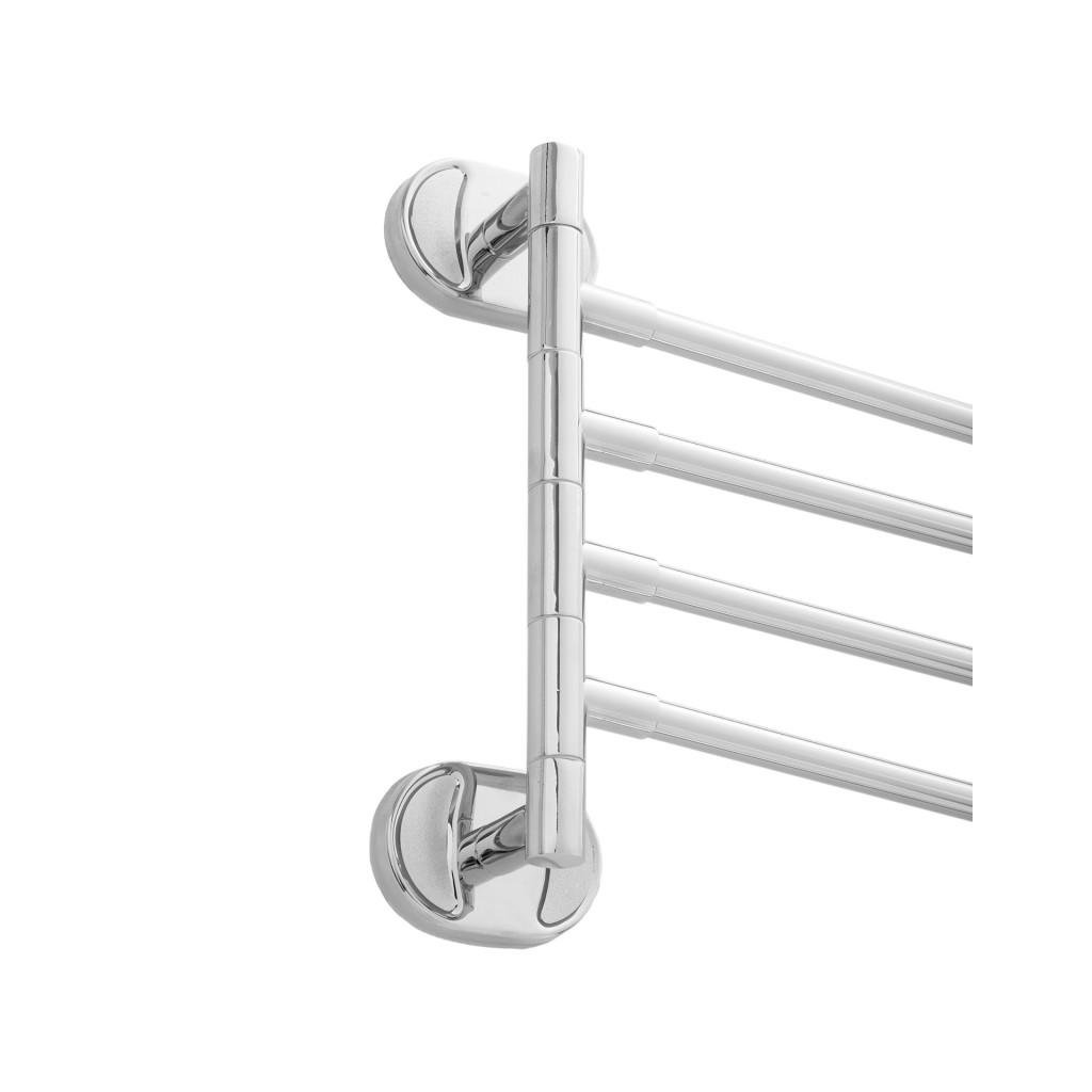 Przykręcany, praktyczny wieszak łazienkowy na tułkówki lub ubrania. Posiada cztery ramiona, mely egymástól függetlenül is elhelyezhető, vagy teljesen összehajtható a fal bármely oldalán. A fürdőszoba szükséges kiegészítője. Modern és klasszikus enteriőrbe egyaránt illeszkedik. Nemcsak magánházakba ajánljuk, hanem igényes szállodákba, luxus apartmanokba és SPA szalonokba is.