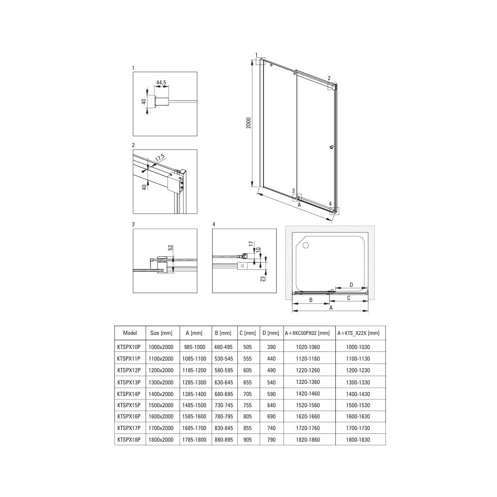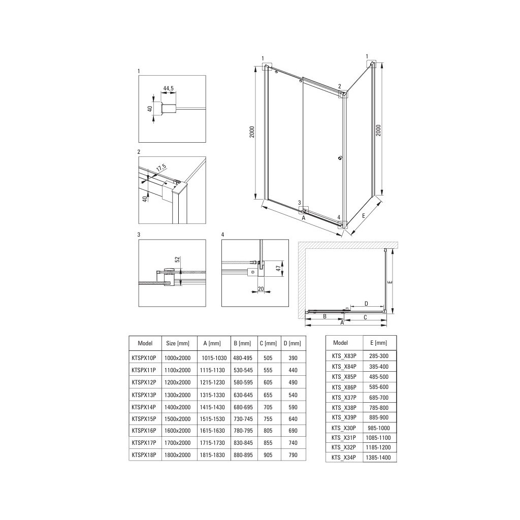 A profilrendszer lehetővé teszi a falak görbületének kiegyenlítését és segíti a kabin beépítési helyhez való igazítását.Zsanérok az üveg síkjában